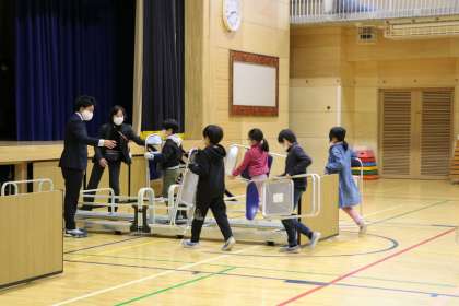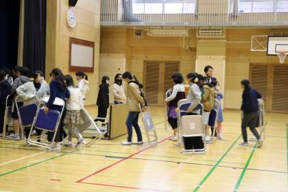 最後の会場片付けも自分たちで行います。高学年になるとこういう機会がさらにあることでしょう。お客様をお迎えしてこのような機会での鑑賞態度はもちろん、準備後片付け、待つ姿勢などとても立派な姿です。山野小学校をリードする最高学年に向けて、早くも頼もしい一面を見せてくれた5年生です。