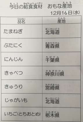 12/16 今日の給食