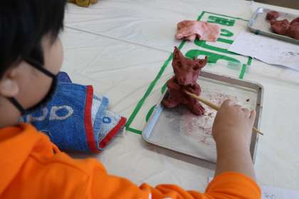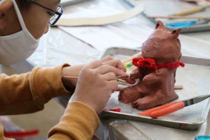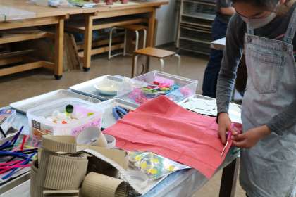 粘土のほかに様々な素材があります。どれを使うとより効果的か、考えながら制作します。