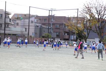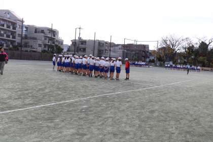 今日は、校庭で学年球技大会が実施されました。寒い中だからこそ体を動かして、運動を通して学年の、学級の団結力を高めようというねらいです。服装を整え機敏に整列する様子に成長を感じます。