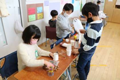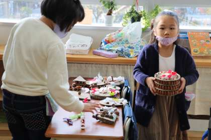 2時間目から始まる「秋祭り」の準備をしている様子です。