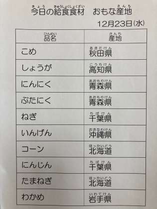 12月23日 今日の給食