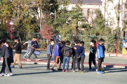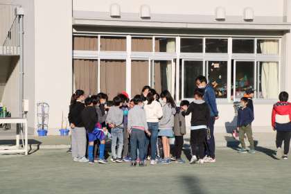低学年の外遊びです。クラス遊びが始まる学級もあるようです。