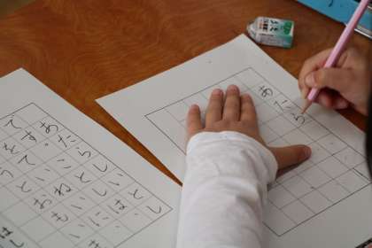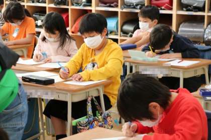 真剣に書写の練習をしている様子です。「消しゴムを使わない。」という約束です。そのくらい集中して練習します。