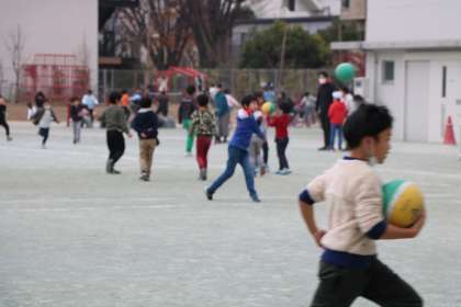 日差しがあまりありませんが、風が吹いていないのでそれほど寒くありません。子どもたちは元気です。