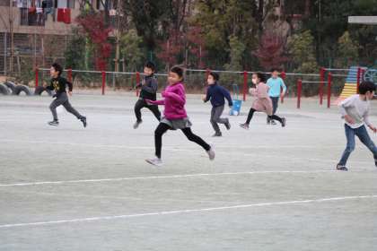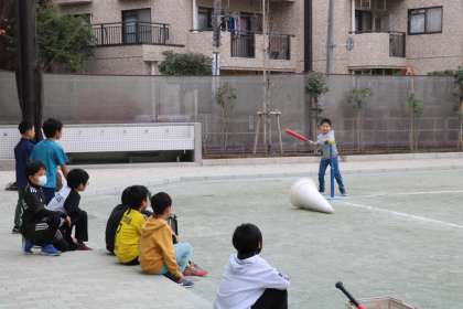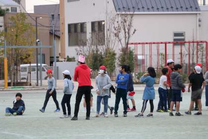 外でお楽しみ会を楽しんでいる学級もあります。写真は