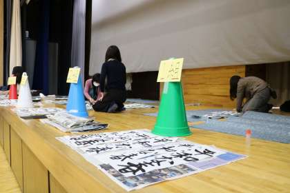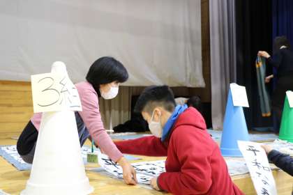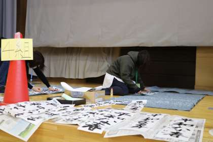 仕上がった作品を、雲花紙に貼ってくださるのは、今日もボランティアで来ていただいた保護者の方々です。ありがとうございます。