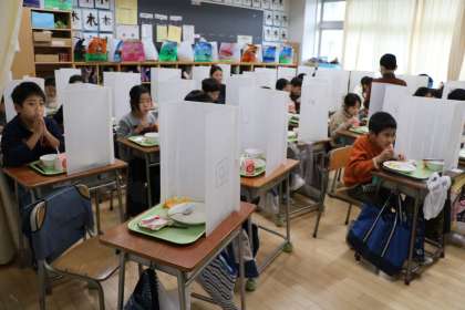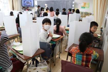食べ終わった人はマスクを着用したり、おかわりじゃんけんも一切声を出さずにしたり、感染予防に徹底的に取り組んでいます。