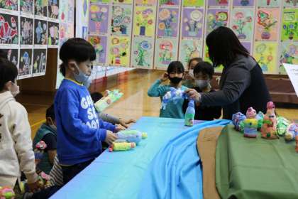 山、空、水をイメージした台面、どこに自分の作品を飾りたいか考えて置きます。