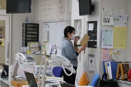 金曜日の朝は全校放送朝会です。看護当番の先生が今週の振り返りと来週の目標を話します。来週は「気持ちの良いあいさつをしよう」が目標です。