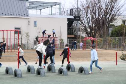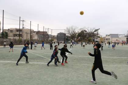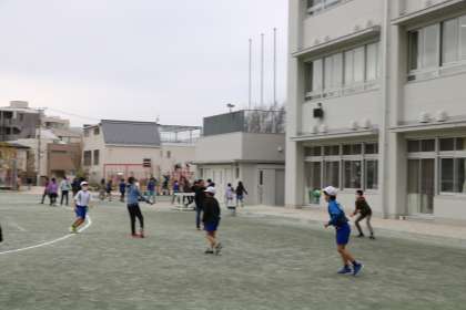 寒さなんかなんのその。校庭では高学年が元気に外遊びを楽しんでいます。