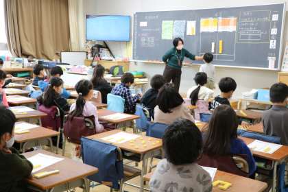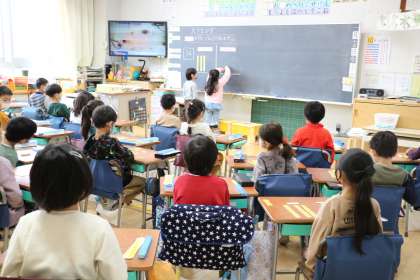 ブロックを使って「大きな数」の学習をしています。2位数の構成の学習です。10がいくつ?というように、10ずつまとめて数えると手際よく正しく数えられます。