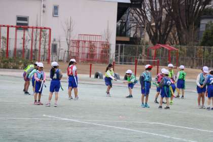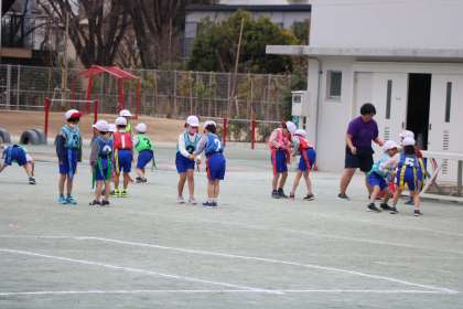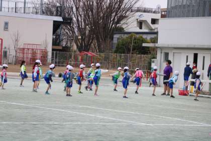 今日使う体の部分を意識しながら準備運動をし、腰にフラッグを付けて準備をします。