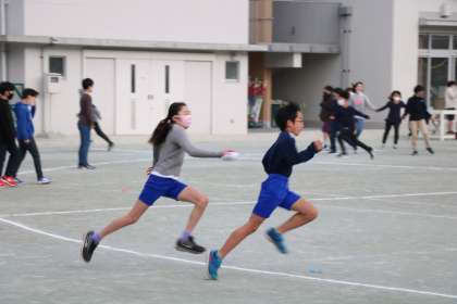 先生と長縄をしたり、友達と鬼ごっこをしたり元気に体を動かし、前頭葉の働きも活発になっています。