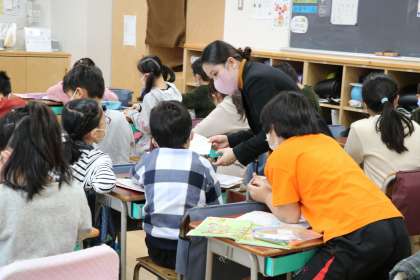 今日はほしい色と形を相手に伝える学習です。形も□、○、△、☆。普段何気なく言っていてもいざ英語でとなると「あれ?なんて言うんだっけ?」と最初は戸惑っていましたが、何回も繰り返したらもう完璧です。家でも忘れずに言えるかな?
