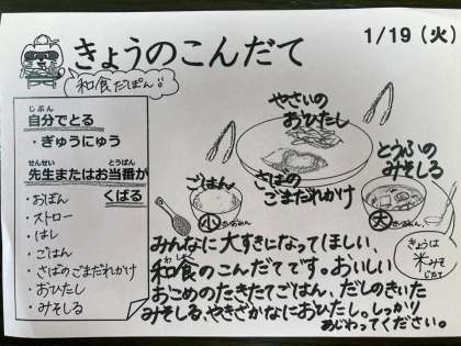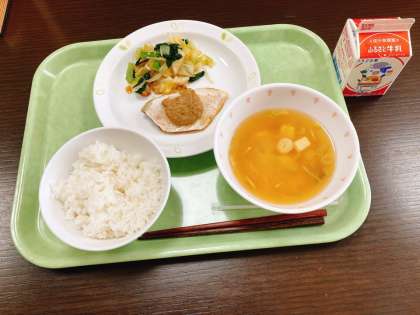 今日は、ごはん、鯖のごまだれかけ、野菜のおひたし、豆腐のみそ汁、牛乳です。