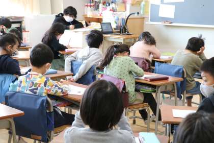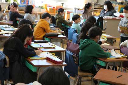 1年生もしっかり朝学習に取り組みます。漢字小テストの予定表を配り見通しが立つと、テストに取り組む姿勢も違ってきた、という学級もあります。担任に小テストの点数結果表をこっそり見せてもらうと、本当に!日ごと満点の子が増えています。