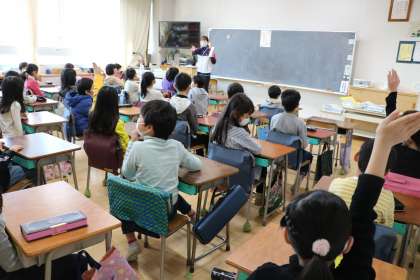金曜日の朝は全校放送朝会です。看護当番の先生が朝の挨拶をすると、職員室まで元気な声が返ってきます。私は、教室で放送を聞いている様子を見て回りました。背中をぴんと伸ばして先生と一緒に聞いているクラス、放送の後来週の目標について具体的にどんなことをすればいいか話し合っているクラスもありました。