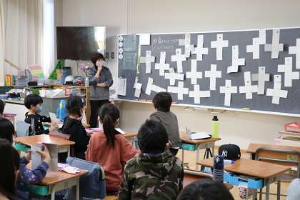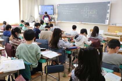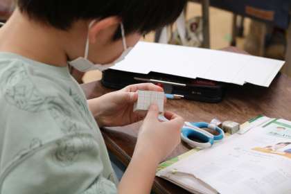 「はこの形」の学習です。直方体や立方体の展開図の書き方を考え、実際に作っています。同じ形の立方体でも展開図が何種類もあることにびっくりです。
