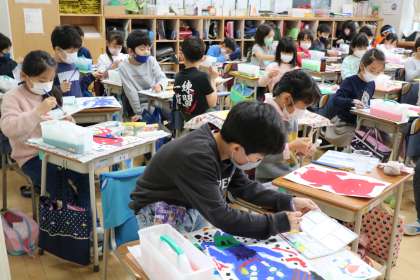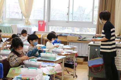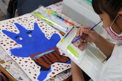 「かわいい鬼だね」と私が声をかけると。「違うの。今日これから牙を付けるから、こわーい鬼になるの。」とにっこり。