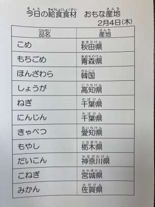 2月4日 今日の給食