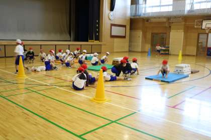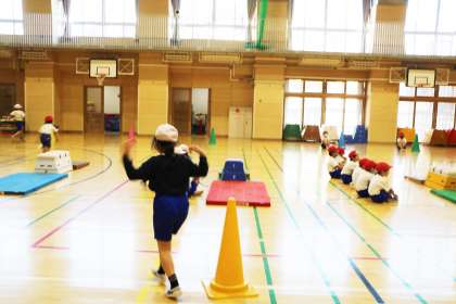 友達も、自分も安全に楽しく跳び箱ができるように、先生の話を聞いたりルールを守ったりしっかりできる1年生です。