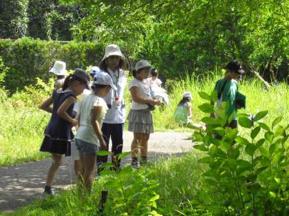4年生は春の見学会に続き、夏の自然見学会にすみれば公園に行ってきました。帽子をかぶり、水筒を持ち、暑い中頑張って歩いて行ってきました。すると、公園の中は、それまでの場所と違って、少し涼しいでした。植物がたくさんあると、温暖化の防止になるのかな?木蔭に入ると、風が本当に気持ちいいです。カブトムシを見つけるなど、夏の自然について感じたり、考えたりしてきました。