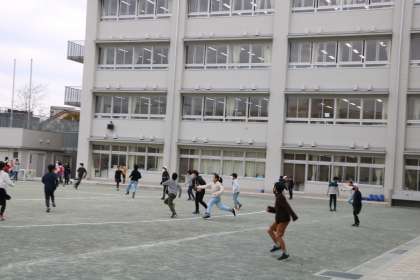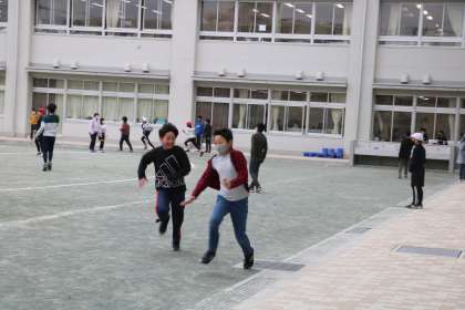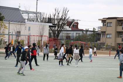 月曜日の朝は高学年のロング外遊びです。まだ陽がなく寒い朝ですが、子どもたちは元気いっぱいです。