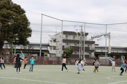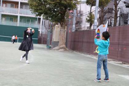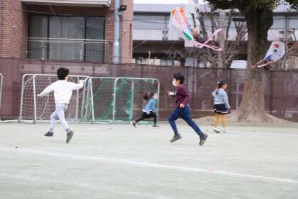 「冬を楽しもう」の学習です。グループで作った凧を揚げに、2グラへ!