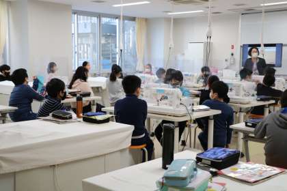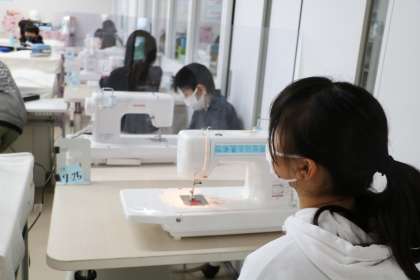 初めてのミシンの学習です。動かし方の手順を勉強したら、まず糸をかけずに針だけでから縫いに挑戦です。
