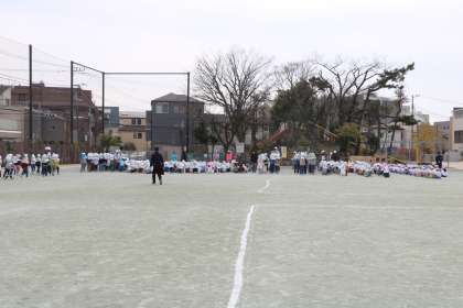 校庭体育をやっていた4年生がお手本となって静かに整列しているので、後から出てくる1・2年生も静かに行動できます。