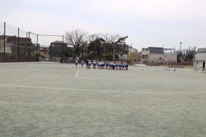 校庭で体育をしていたクラスも素早く校庭の真ん中に集合して、放送をよく聴いています。突然の放送にも落ち着いて行動しています。