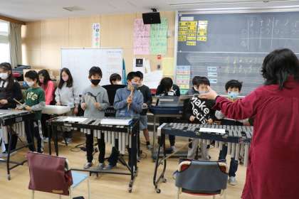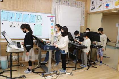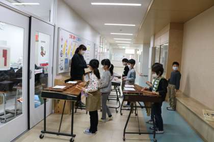 校長室まですてきな楽器の演奏が聞こえるのですが、日に日に曲らしく(失礼!)上手になってきます。担任の先生も協力して、パート練習を重ねています。