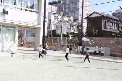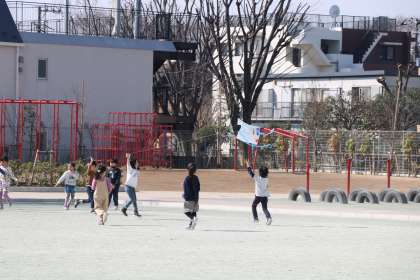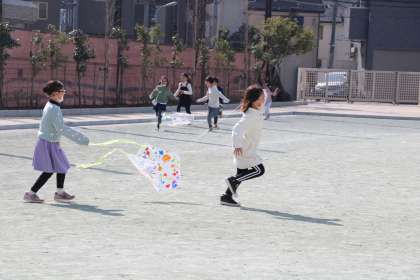 「冬を楽しもう」の学習です。班で作った凧を揚げて楽しみます。