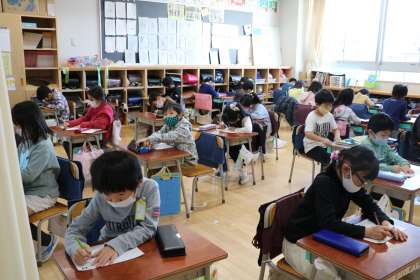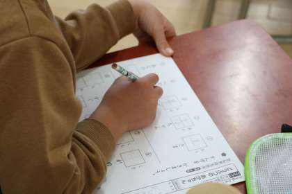 真剣な顔で、漢字の学習、新出漢字の学習、テストなどに取り組んでいます。