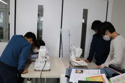 今日はミシンに糸を通して試し縫いです。