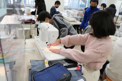 縫い目がそろっているのを見ては「お〜!!」