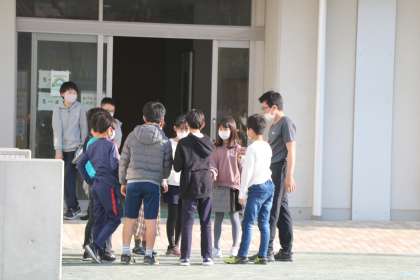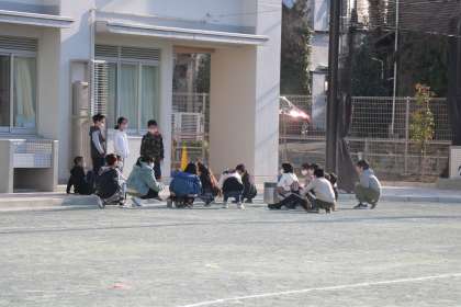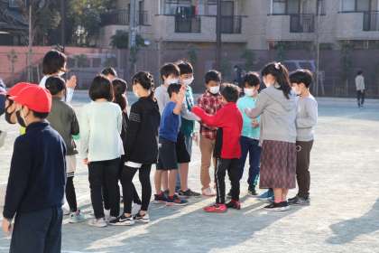じゃんけんをしている学級があちこちで見られます。鬼決めをして、鬼ごっこが始まります。