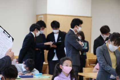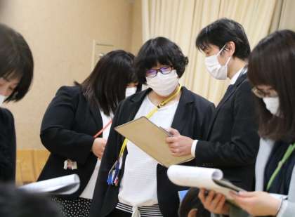 授業中も先生たちはメモを取ったり確認し合いながら学びます。そして授業の後は、先生たち全員で授業についての協議会です。今日の授業から学んだことを明日からのそれぞれの授業に、活かしていきます。