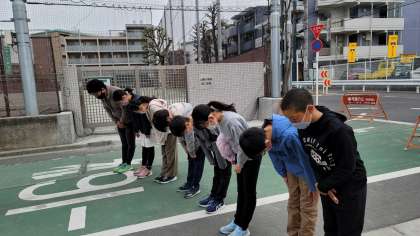 今日は5年生朝のあいさつ隊最終日です。こんな姿勢であいさつします!と、見事な挨拶を見せてくれました。