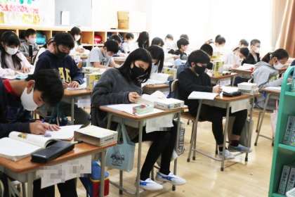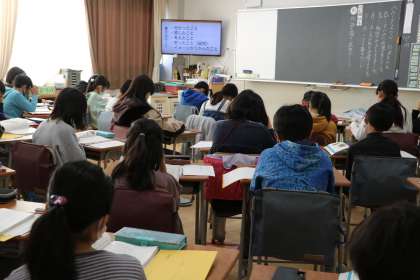 5年生の廊下には、実行委員が作った日めくりカレンダーとともに、今日のめあてが書かれています。どのクラスの教室でも、学習に集中している姿が見られます。