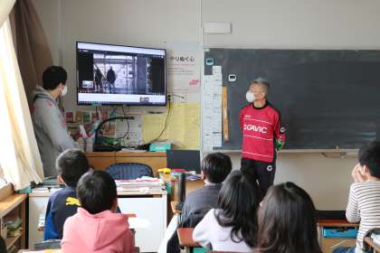 防災についての社会科学習の一環として、山野小学校避難所運営本部長の方にゲストティーチャーに来ていただきました。映像や資料などたくさんの資料を基に、10年前の東日本大震災のことや、そこから関連する防災についての話を伺いました。