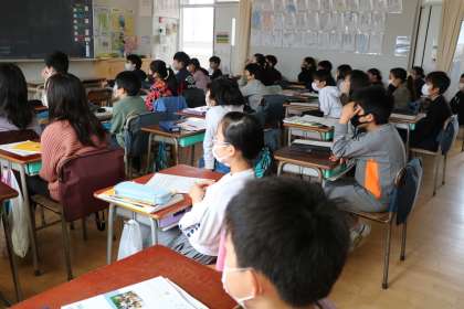 例年体育館などで学年一堂に会してお話を聞くのですが、今年度は教室でクラスごとに話をしてくださいました。