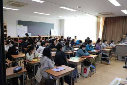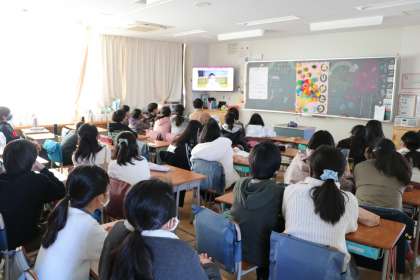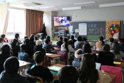 各学年からの出し物をテレビで見ている6年生の様子です。どの学年も心がこもった力作です。