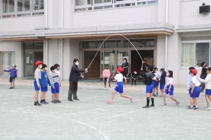 3年生がやり始めたこともあり、長縄を楽しむグループがいくつもあります。