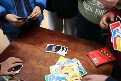 雨の日の休み時間は外で遊べません。どんな過ごし方をしているのか?3年生の教室の様子です。雨の日限定でカードゲームを楽しんでいる様子です。