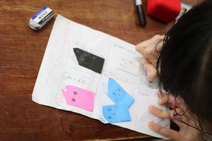 こちらは、学級の係活動をしている様子です。図書係なので、本のしおりを作ってあげるのだそうです。自分たちで考えた何種類もの図柄の中からリクエストを聞き、同じものを作ってあげます。