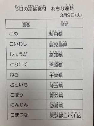 3月9日 今日の給食