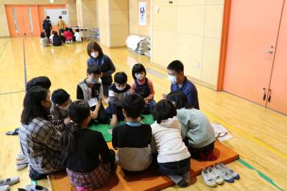 グループに別れ、英語のネイティブスピーカーとけん玉やかるたを楽しみます。子どもたちのなじみ深い活動でも、英語でのコミュニケーションは新鮮です。