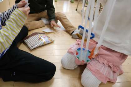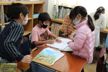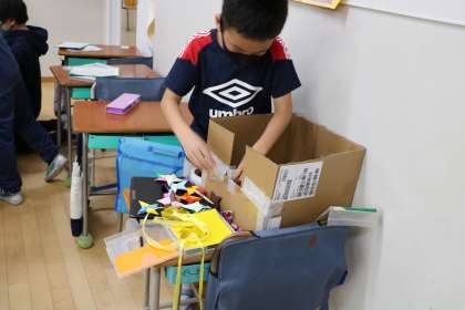 こちらのクラスは、お楽しみ会の準備です。ゲーム屋さんを作りみんなで楽しむのだそうです。メダルや商品も用意して。どんなお店ができるか楽しみです。